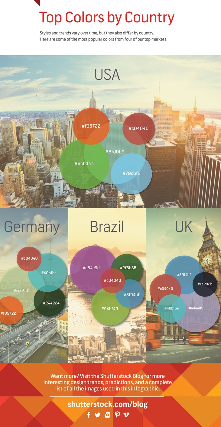 One company that has been mining its data is Shutterstock, the online picture agency. They have picked up some clear trends when analysing the dominant colours in pictures chosen by graphic designers around the world. North America likes greens and blues, for example, and African designers favour orange and red. Pink is popular in China, Russia and Argentina. Beige is declining in popularity as grey rises.