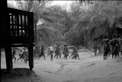 NL: There is a lot of different genres and Louis has recorded them all. There is So which is a comparable form where the men get together to sing masculine songs that explore who they are. There is a very common ceremony for a spirit called ejengi. It is a beautiful spirit that is dressed from head to toe in raffia palms.